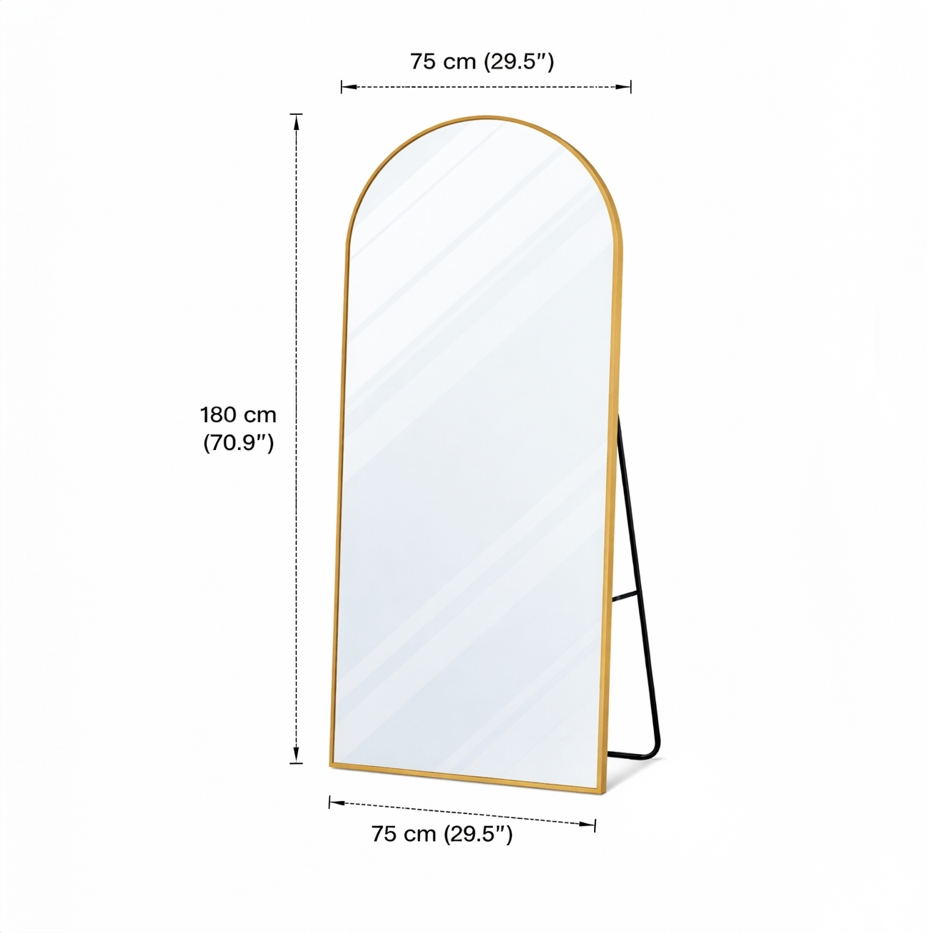 Met haar afmeting van 75x180 cm is Kaja perfect als passpiegel goud. Je ziet jezelf van top tot teen en vergroot tegelijk optisch de ruimte. Dat maakt deze grote boogspiegel goud niet alleen mooi om naar te kijken, maar ook praktisch in dagelijks gebruik.