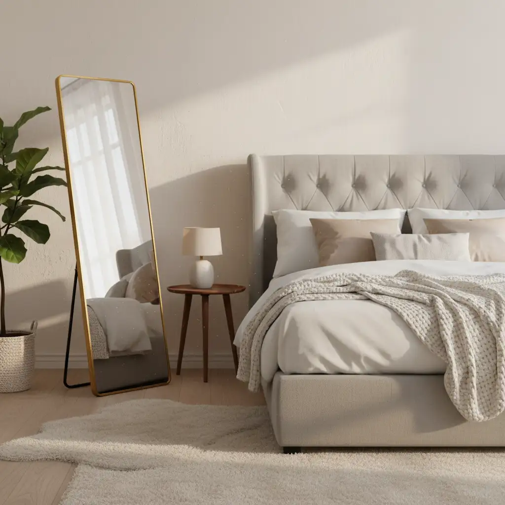 Een spiegel is vaak puur praktisch, maar Jack voegt echt iets toe. De gouden afwerking zorgt voor een subtiel accent dat je interieur net dat beetje extra geeft – zonder dat het schreeuwerig wordt. Dankzij het slanke ontwerp en de keuzevrijheid in plaatsing pas je Jack makkelijk aan jouw woonstijl aan. Geen muur vrij? Geen probleem. Zet hem gewoon neer waar je wil, en verplaats hem zonder moeite. Jack maakt het makkelijk om je ruimte visueel te openen én een stijlvol detail toe te voegen.