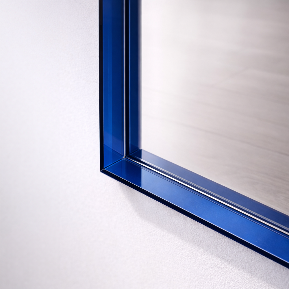 Spiegel Amber in blauw is voor wie kleur durft te gebruiken op een verfijnde manier — krachtig, rustig en helemaal van nu.