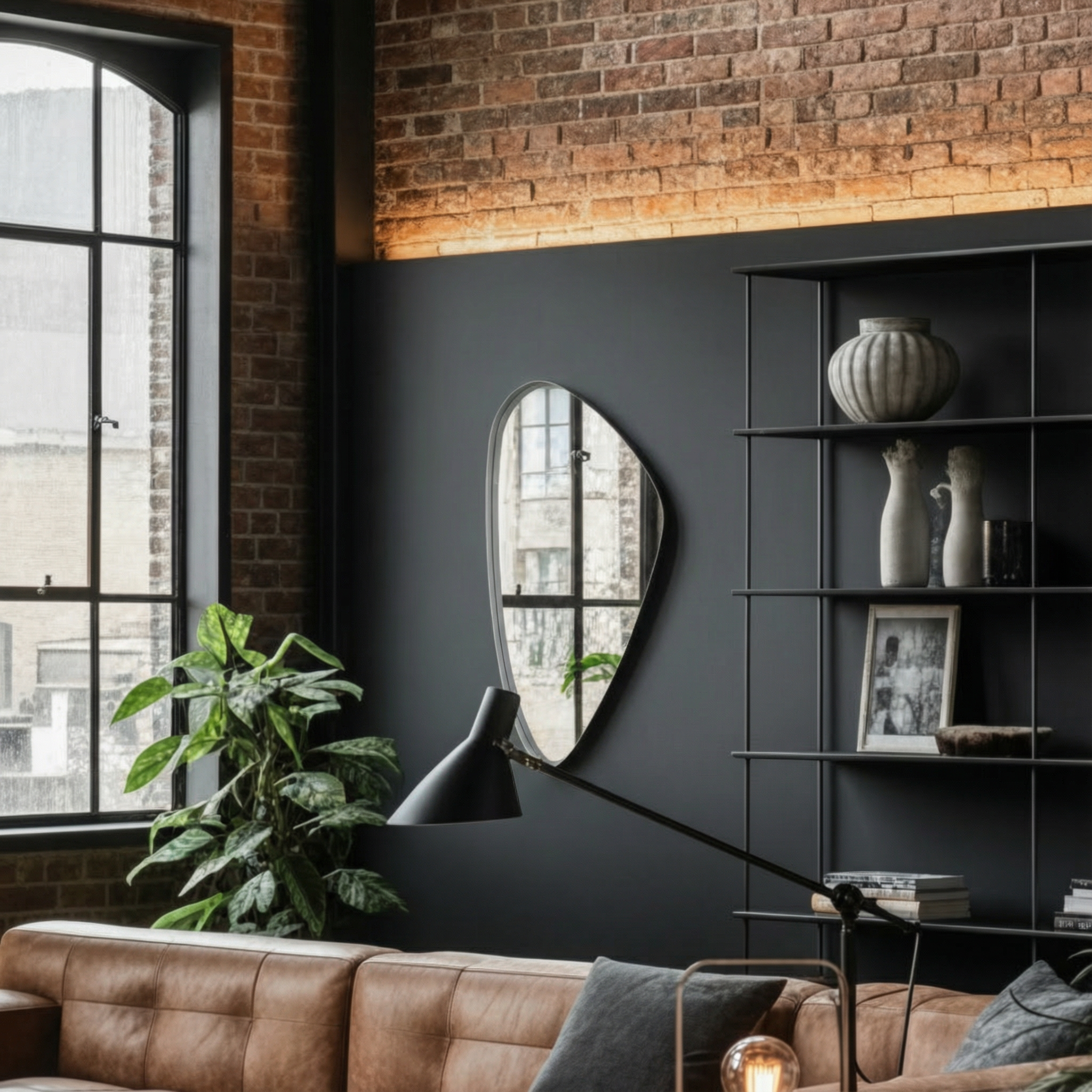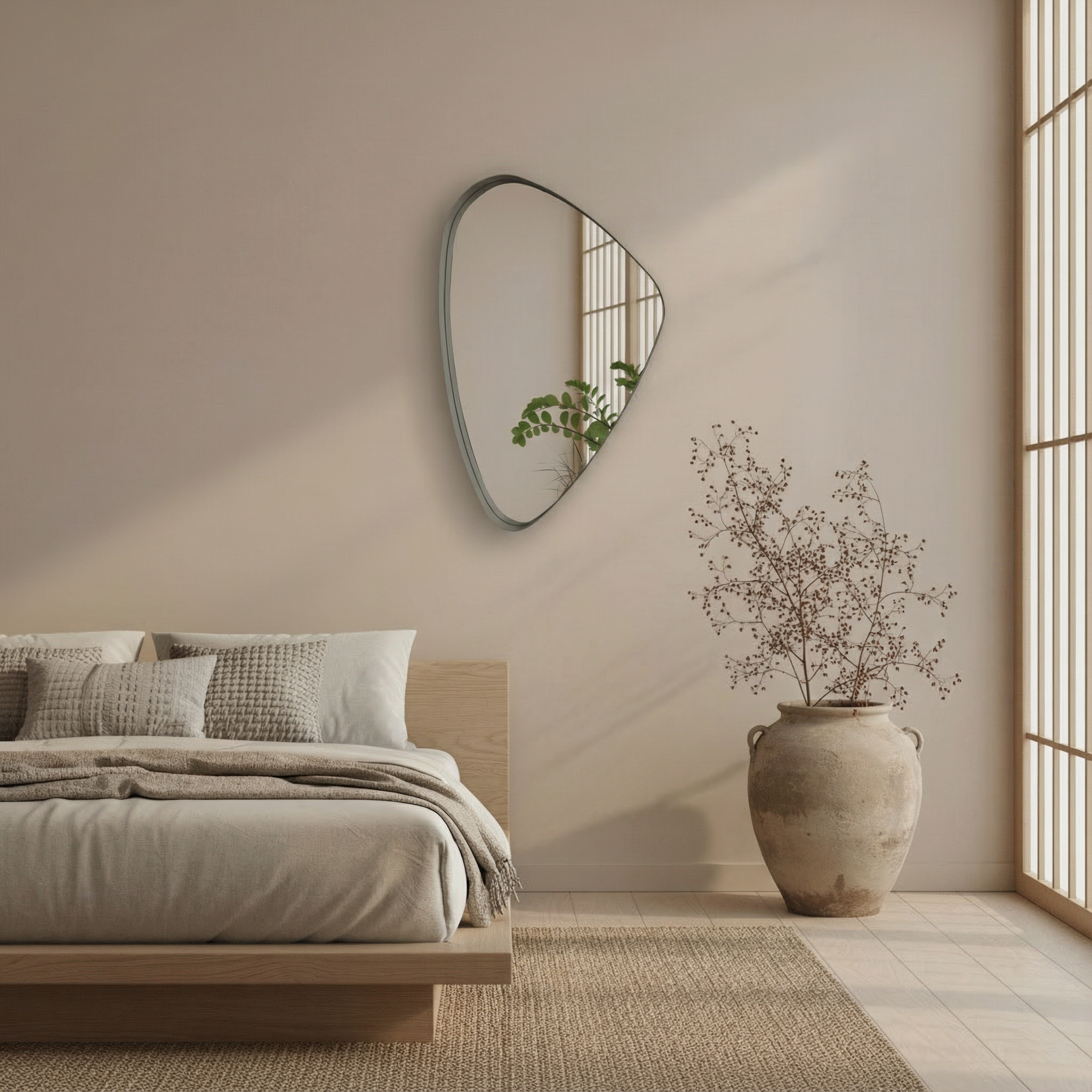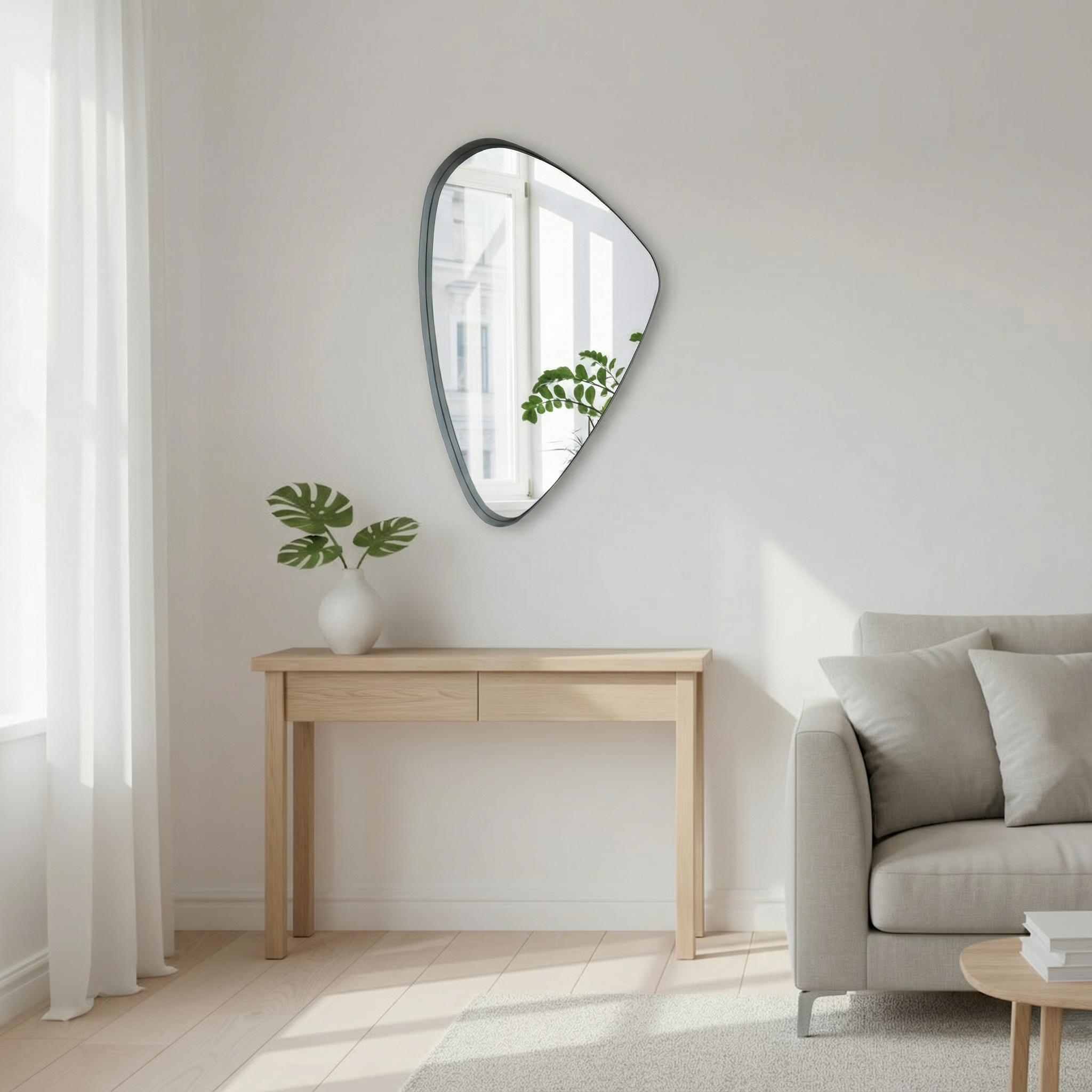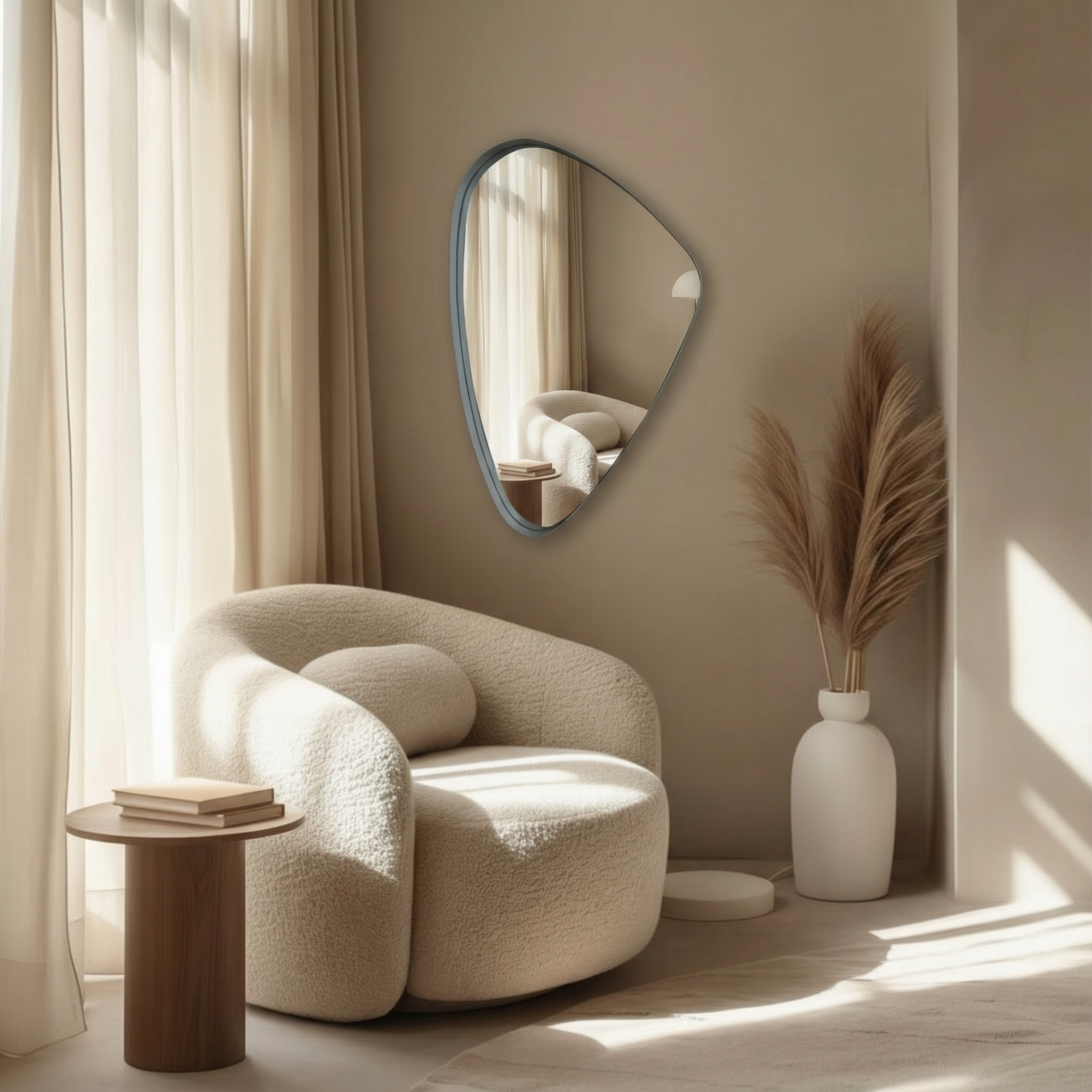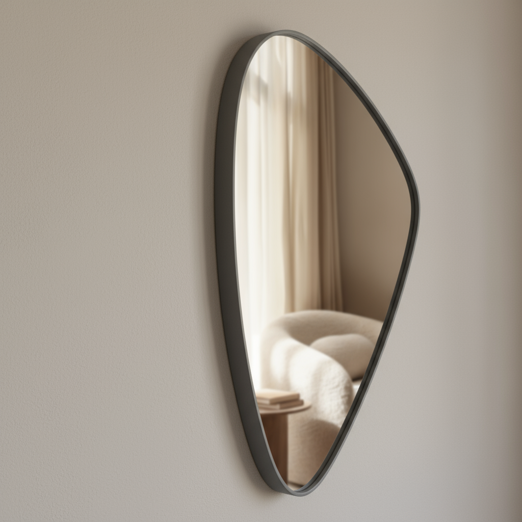 Spiegel Evi Taupe: Organische en Asymmetrische Stalen Spiegel van 61x91 cm