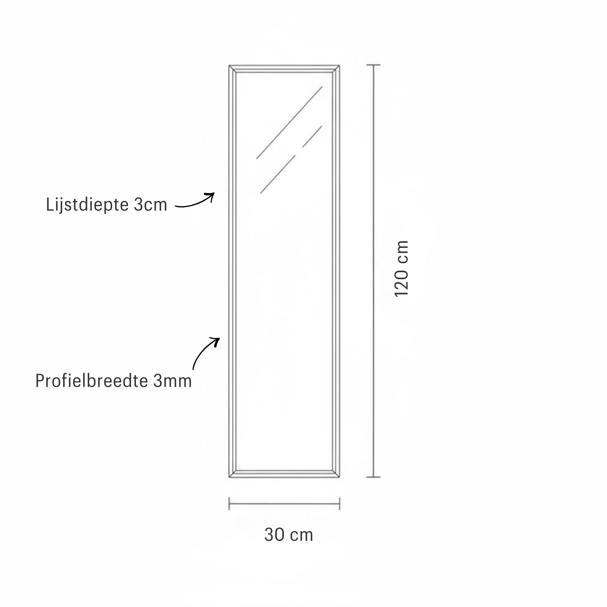 - Lijstdiepte 3 cm