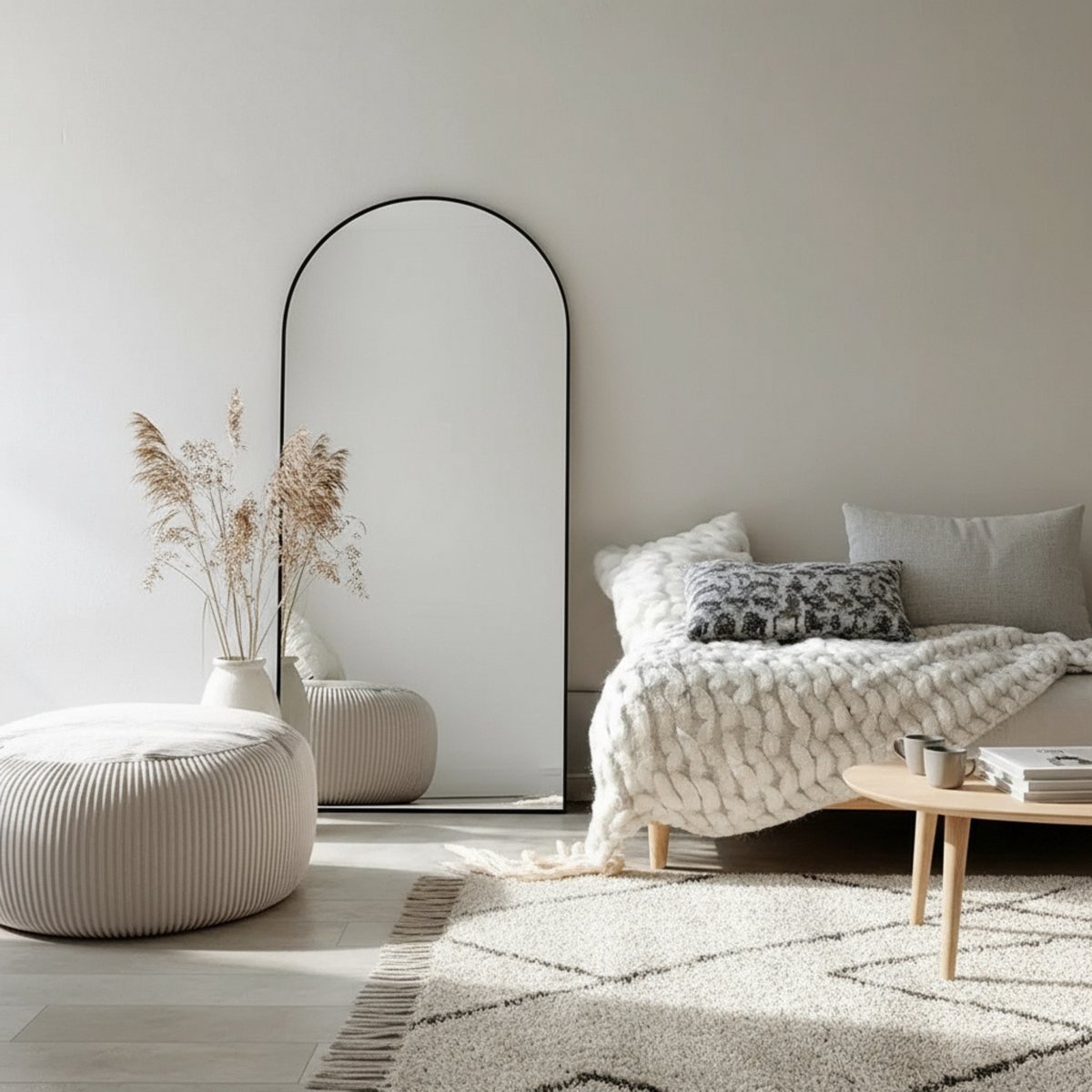 Heb je een kamer die krap aanvoelt of waar weinig natuurlijk licht komt? Dan is de Ravenna een praktische manier om meer licht en diepte te creëren, zonder te verbouwen. Door zijn formaat functioneert hij als passpiegel, maar voegt hij tegelijk iets toe aan de ruimte. De boogvorm doorbreekt rechte lijnen, wat goed werkt in een strak of minimalistisch interieur. En doordat je hem niet per se hoeft op te hangen, is hij ook geschikt voor tijdelijke woonruimtes of huurwoningen.