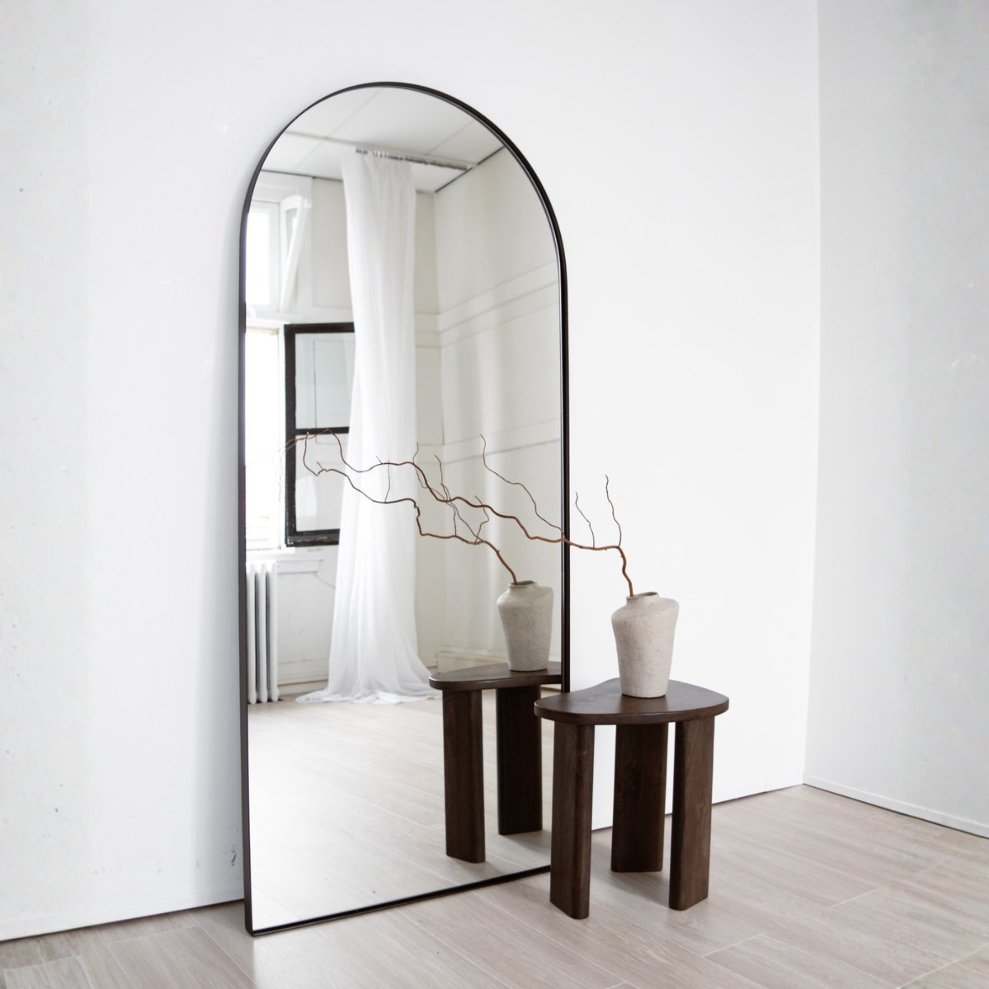 Dankzij het slanke ontwerp werkt hij goed in lange of smalle kamers. De reflectie zorgt voor meer licht, terwijl de boogvorm het geheel visueel verzacht. Of je nu op zoek bent naar een spiegel om je outfit te checken of om je ruimte meer diepte te geven: met de Ravenna zit je goed.