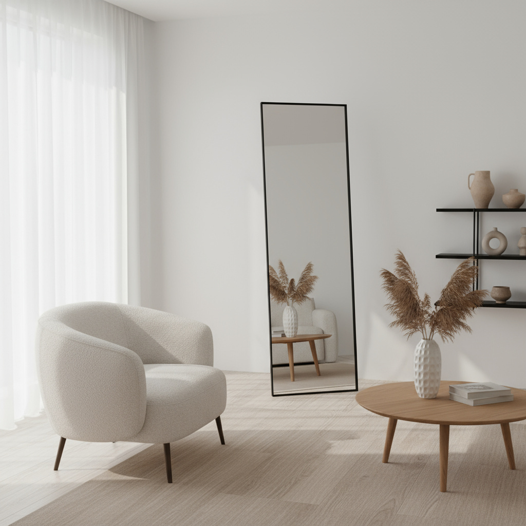 De spiegel Avenue is leverbaar in de maat, 40x180 cm. Je kunt de spiegel staand neerzetten met de handige staander die aan de achterkant bevestigd is. Zo kun je jezelf gemakkelijk van top tot teen bekijken. De spiegel is geschikt voor elke kamer in huis, of het nu gaat om de slaapkamer, de kleedkamer, de hal of de woonkamer. Met deze spiegel voeg je een stoer en functioneel element toe aan je interieur.