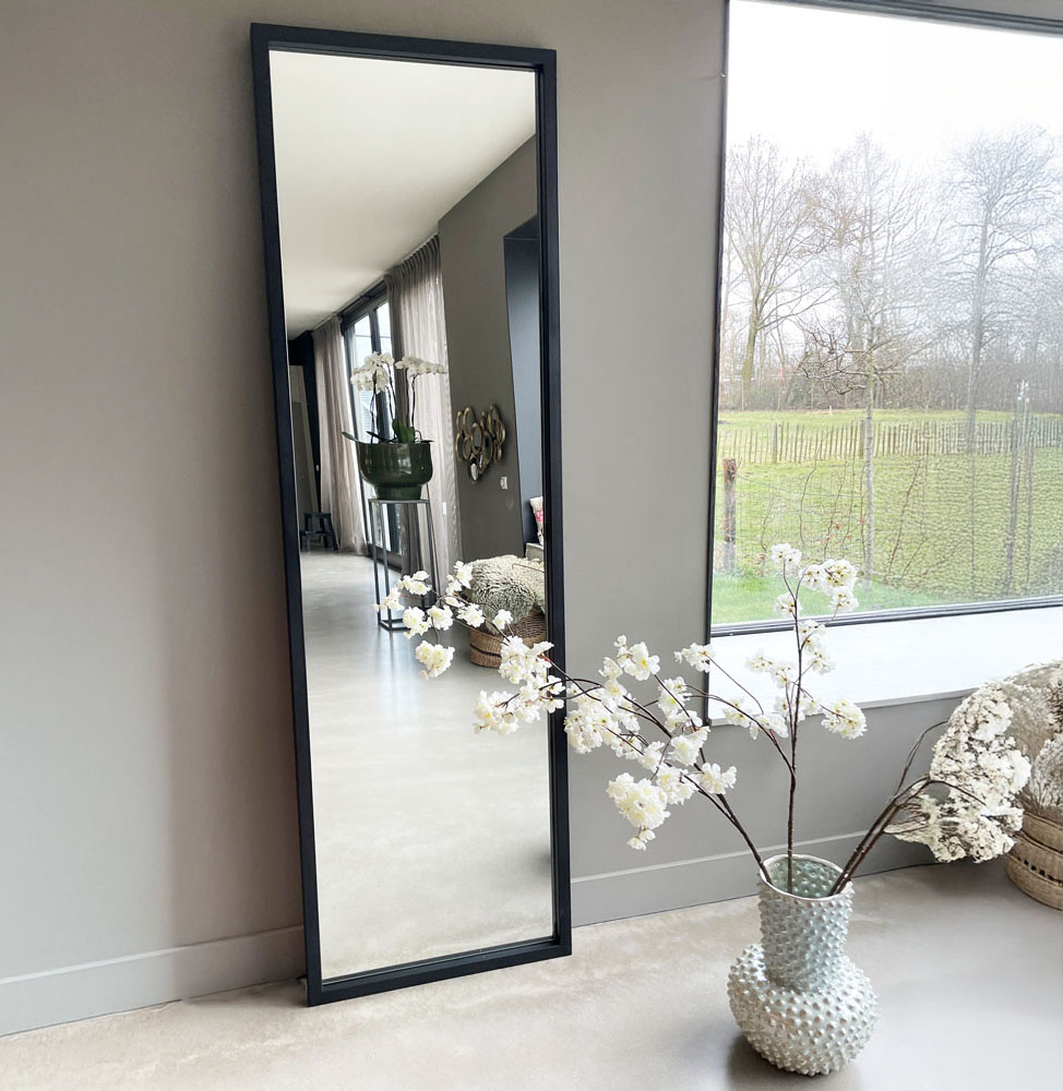 DMC  Grote Stalen Passpiegel met Blokprofiel Frame Zwart Grote Stalen Passpiegel met Blokprofiel Frame Zwart